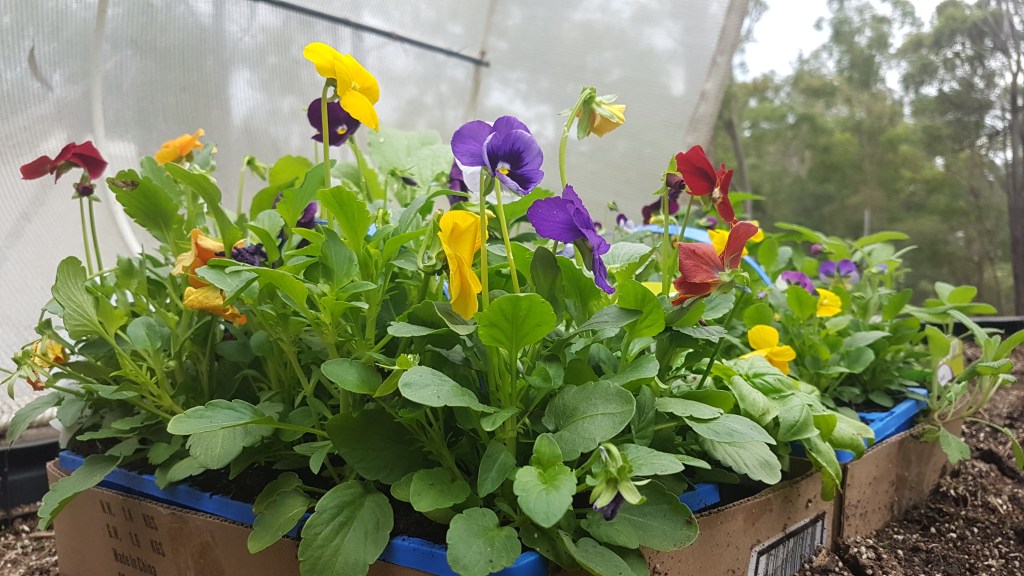 Pansies! Yum! With their delightful colours and strangely minty flavour, these are a favourite in our garden. With our increasingly warm subtropical climate we can only grow them in the six coolest months of the year, but they’re worth the work of an annual. My daughter is itching to harvest them.