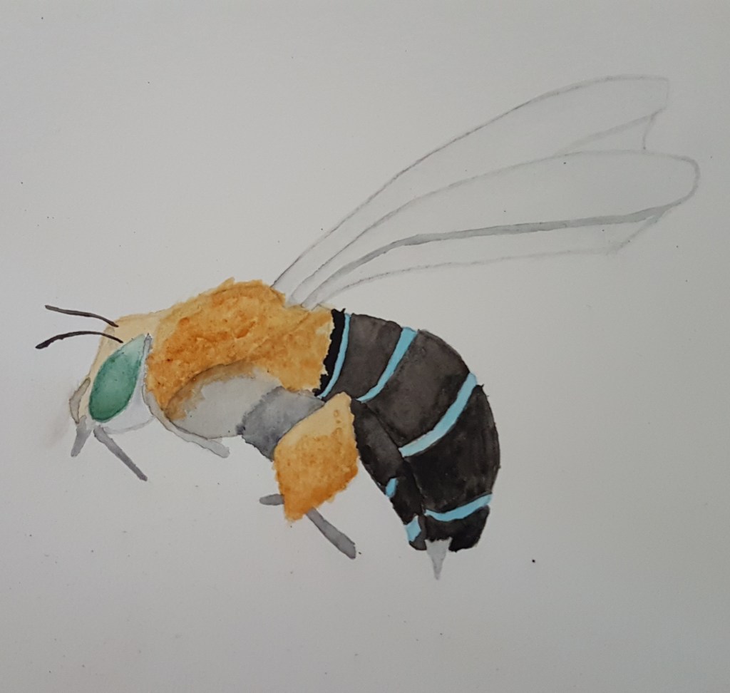 Recently I was sitting on my back patio enjoying a lunch break when I heard a loud buzzing. I looked around expecting to see a hornet or a wasp, but was delighted to find a Blue-banded Bee instead! This was only my second time seeing a Blue-banded bee and last time my attempts to photograph it were stymied by its speed and agility. This time I hit record and watched in awe as it buzz pollinated my Blue Tongue Plant. This Australian native stores its pollen inside tiny capsules that release the valuable powder when it is agitated by the vibrations of certain native bees. Without this buzz pollination the pollen remains trapped and the plant doesn’t produce any fruit. Afterwards I examined the petals and discovered little grains of pollen that had fallen from the anthers. I have three of these plants that regularly produce berries so we must have lots of buzz pollinating visitors though we rarely see them.