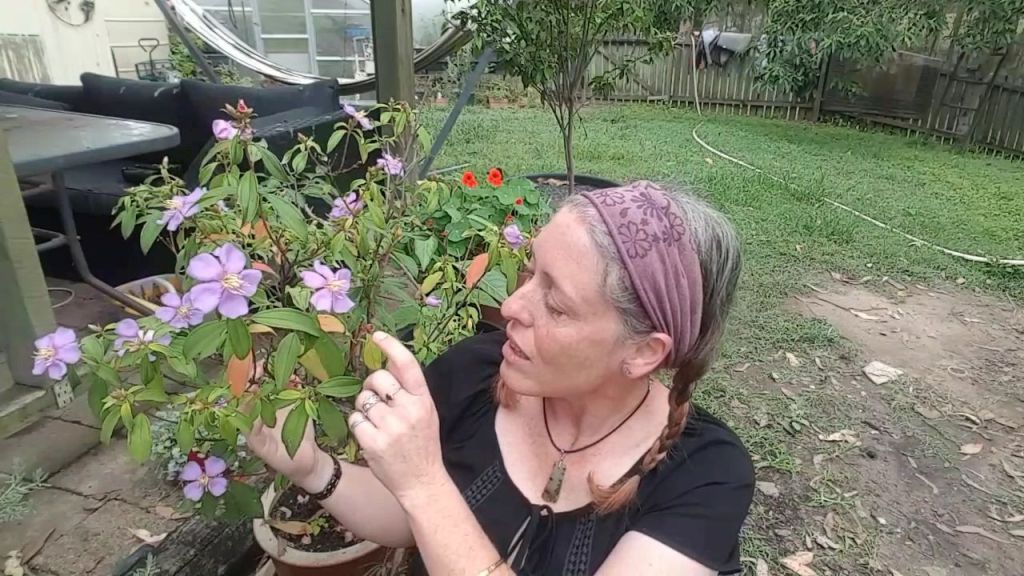 Hello, and welcome to my garden. Today I’m sitting here with the Blue Tongue plant. It’s called the Blue Tongue Plant because these berries which are developing here, if you eat too many of them, apparently your tongue goes blue. We never get a huge harvest off these because I suspect we’re losing them to native wildlife which is fine. Now, it’s also known as Native Tibouchina and Melastoma affine is the scientific name. We’re going to leave the discussion of this plant for another video, because today I want to you about two very special buzz pollinators that help me with this plant, because without buzz pollination, this plant won’t produce any berries at all which is the case for a lot of Australian natives. So, let’s go see what buzz pollination is all about.