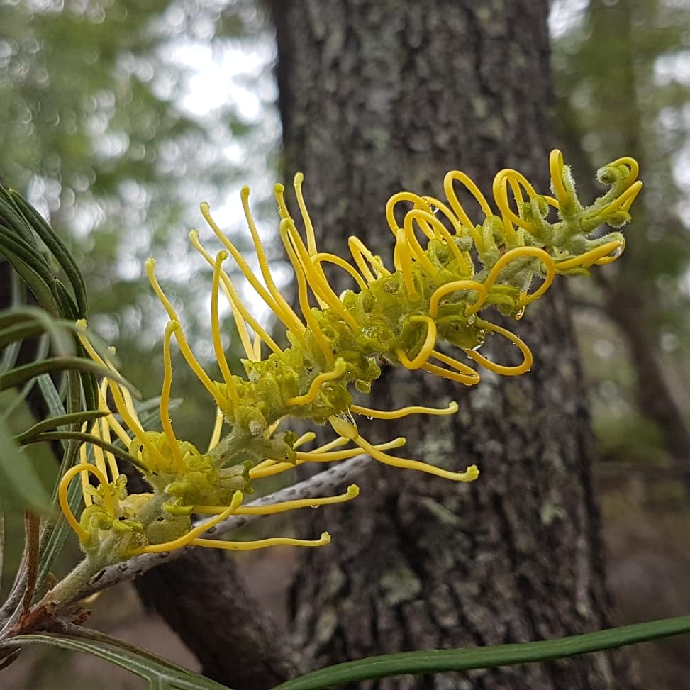 - Grevillea “Sandra Gordon” – I fell in love with this plant at a local market. The flowers are spectacular, bright, bright yellow like they captured the sunlight. The birds and possums love them too. Since planting this Grevillea has flowered every Winter. Despite carefully watching I rarely see a fully developed flower in bloom. Sometimes they are eaten before they even open. I am hoping that as it matures, more blooms will mean that I get see some of its glory. In the meantime, it feels good to know that it’s feeding my garden friends.