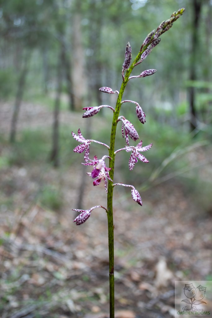 Dipodium variegatum is leafless and the only part of it that appears above ground is the stalk and flower. It is a saprophyte meaning that it is not capable of creating its own nutrients. It can’t photosynthesise like most plants.