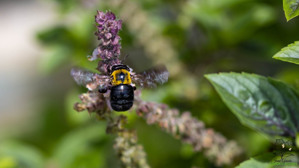 She sounds like a jet engine in comparison to other buzz pollinators. He probably does too, but I’m yet to find a male! At around one inch or two and a half centimetres long, the Great Carpenter Bee is Australia’s largest bee and yes, they are capable of stinging. They don’t usually sting though. Like most Australian native bees that have stings they are not aggressive and will only sting in defense.