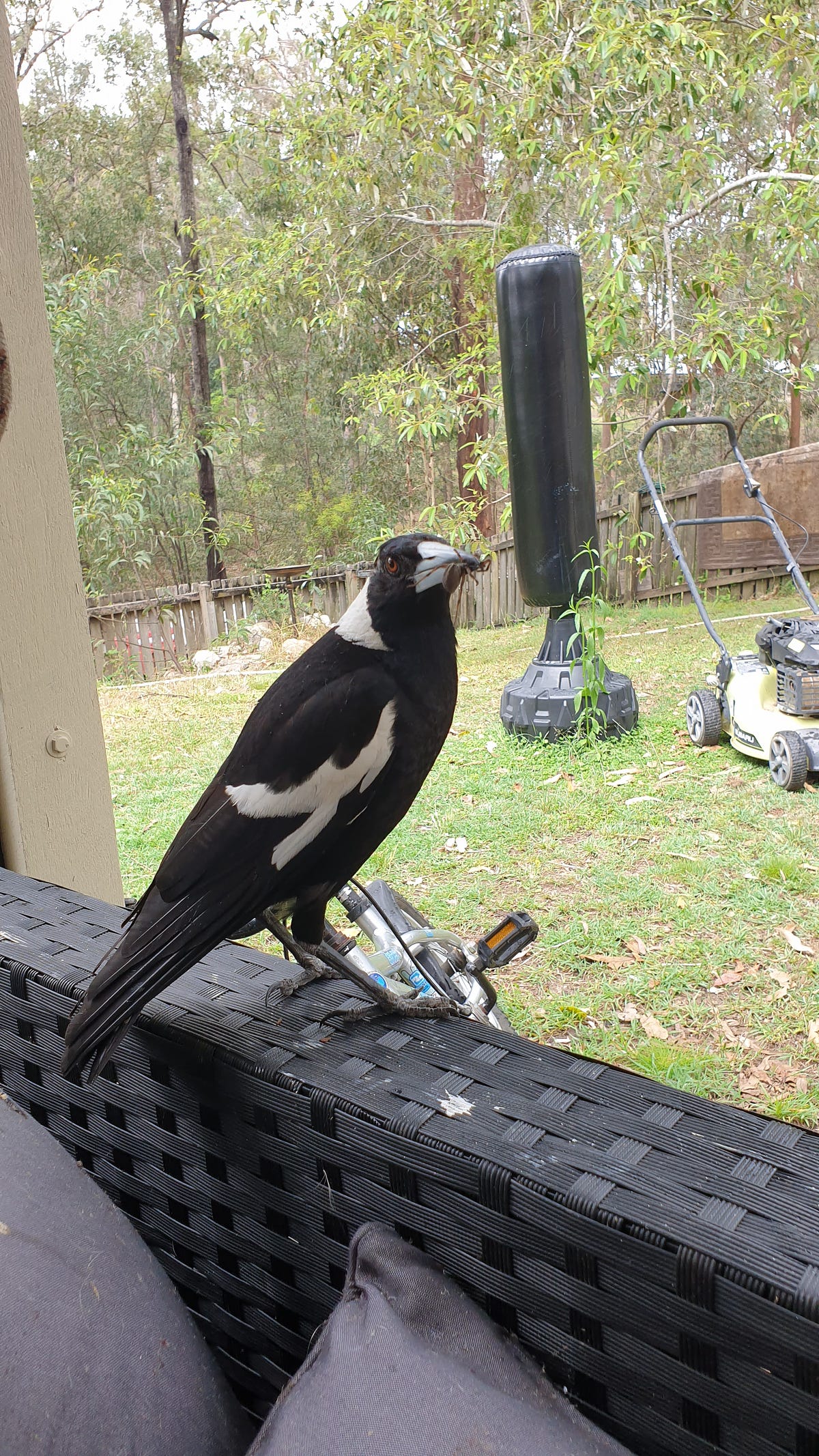 Last Friday, our resident Magpie father showed up on the patio with his latest hunting success, a spider with a very large abdomen. He appeared concerned that I might want it, but I reassured him he was welcome to keep that one to himself!