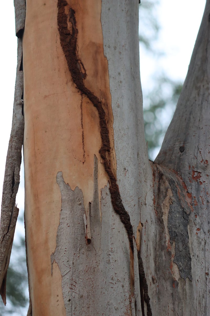 When a tree gives heartwood to a termite colony or a fungus, refuge and food to the koala or possum, a whole world to a stick insect, bark or wood to craft and shelter, it is left with scars and blemishes. These scars and blemishes are the termite trails, the scratches, the holey leaves, knots and fissures and hollows. These scars and blemishes are signs of giving and generosity and connection to the cycles of life and death.