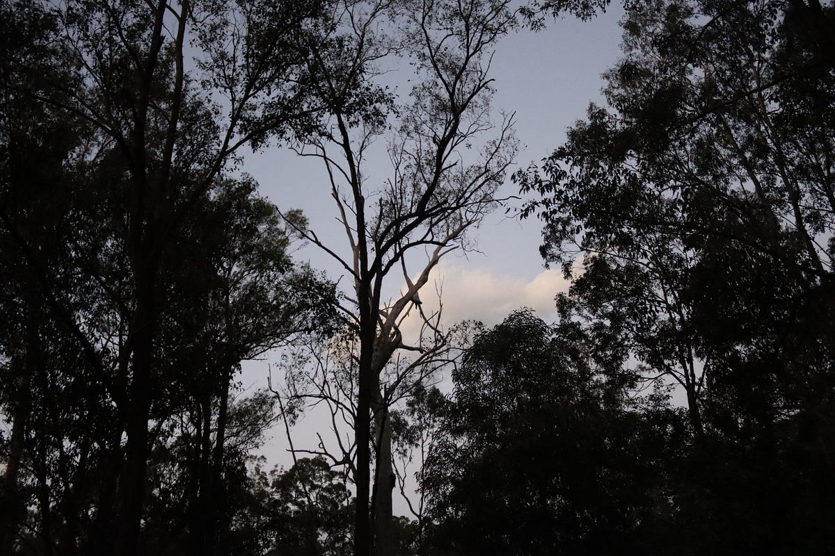 I got some Sulphur Crested Cockatoos but they turned away every time I clicked so the photos were useless. The shot I ended up choosing is the view of treetops from my back patio. All those trees have yielded sightings of wildlife but the dead tree has been the most generous. We’ve seen countless species in and around its branches including two endangered species, Powerful Owls and Greater Gliders.