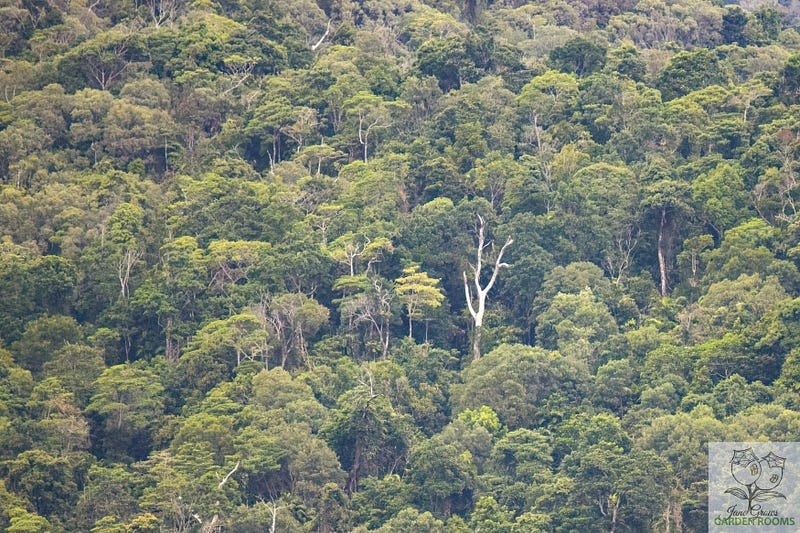 On Friday, the first day of my photo week, I looked up at the mountains for signs of rain. We often see the rain approach over the forested slopes before it gets to us at the base. I saw a stark white tree against the green and was fascinated by the contrast. I snapped a photo and was enamoured by the variety of greens and foliage textures. It is World Heritage Listed rainforest and I feel so fortunate to see it in the distance every day.